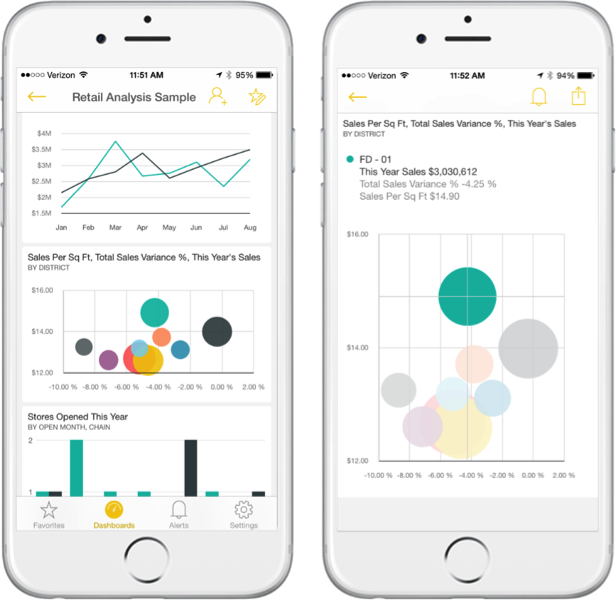 Power BI offers, true native Windows desktop, mobile iOS and Android apps that deliver interactive visualizations, alerts, real-time annotation with email and messaging integration.